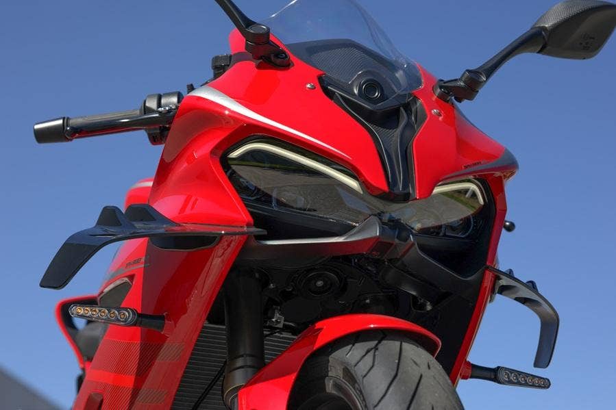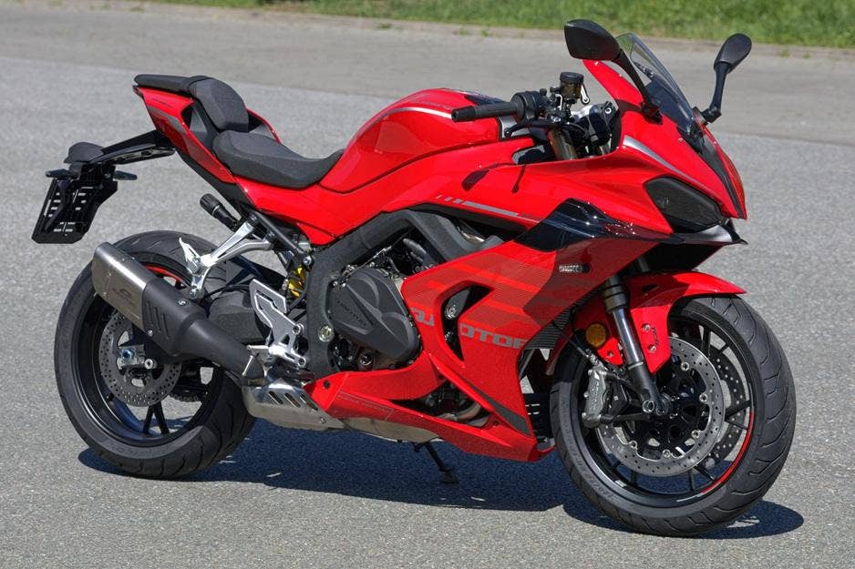 Model 2026 přichází se zásadními změnami. Ačkoli zvenku změnu takřka nepoznáte, uvnitř je jich opravdu hodně. Nová generace SRK800RR má nový rám, původní ocelový nahradil hliníkový rám typu deltabox. Změnila se i celá geometrie motocyklu, což zajistilo lepší ovladatelnost a hlavně stabilitu při jízdě ve vysokých rychlostech. Upraven byl i motor. Nyní má mnohem silnější střední pásmo a výkon lineárně roste až k omezovači. Nově má SRK800RR elektronický plyn, díky kterému bylo možné přidat oboustranný quickshifter. Podařený dynamický a agresivní design, který vzešel z pera italských designerů není potřeba měnit, proto zůstává prakticky bezezměny, až na nové barevné provedení.