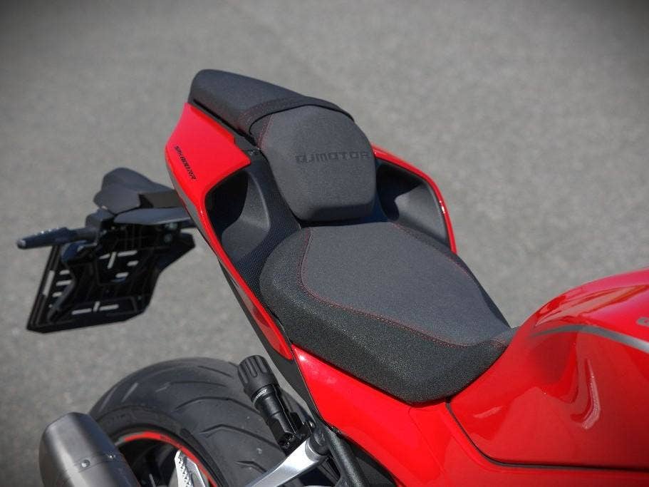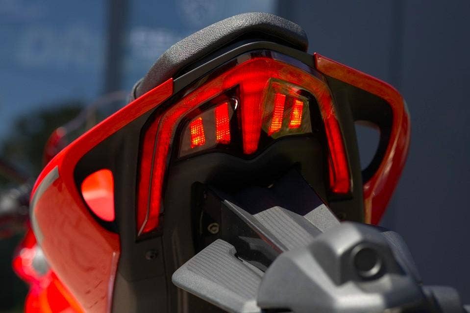 Speciálně navržené zadní LED osvětlení navazuje na estetiku přední části a vytváří jedinečnou identitu supersportovních motocyklů od QJMOTOR. Kromě předního a koncového světla jsou samozřejmě i blinkry a další osvětlení Full LED. Design celé zadní části je též originální a neokoukaný. Tenká, minimalistická podsedlovka s výraznými liniemi a aerodynamickými průduchy dává vyniknout ladným tvarům SRK 800 RR a poukazuje na silný charakter tohoto supersportu.