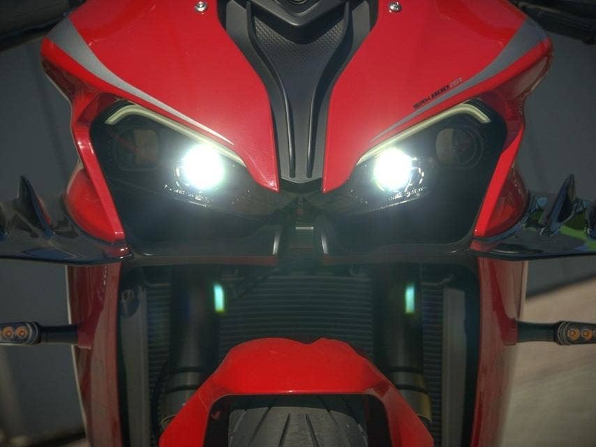 SRK 800 RR je podobně jako ostatní modely QJMOTOR vybaven Full LED osvětlením - počínaje zdvojeným hlavním světlometem, přes blinkry až po výrazné koncové světlo. Design přední masky, denní svícení řešené LED pásky ale hlavně čtyřoký hlavní světlomet vyzařují agresivitu a dodávají výrazný charakter tomuto zcela novému supersportu. Moderní technologie LED osvětlení je nenáročná na údržbu, zajišťuje optimální viditelnost a dokonale osvětlenou vozovku za soumraku i ve tmě.