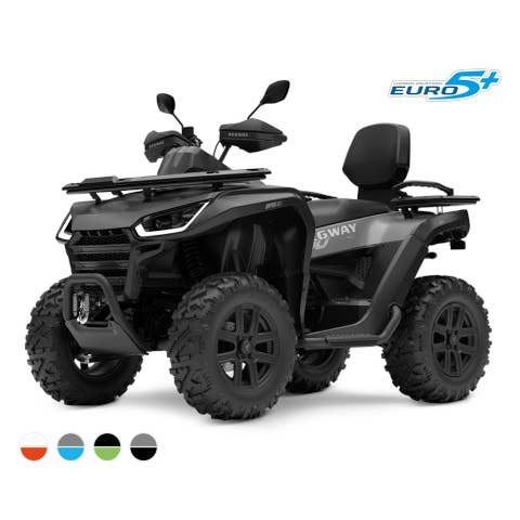 Užitková / pracovně-rekreační čtyřkolka s prodlouženým podvozkem, E5 - L7e, elektrický posilovač řízení EPS, kapalinou chlazený jednoválec 570 cm3 EFI, automatická převodovka P/R/N/L/H, brzdění motorem, pohon 4x4 se dvěma uzamykatelnými diferenciály, dvojitá A-ramena vpředu / dvojitá A-ramena se stabilizátorem vzadu, hydraulické tlumiče s progresivními pružinami, přední, zadní a boční ochranné rámy, tažné zařízení, el. naviják 2500 lbs, kompozitní nosiče vpředu a vzadu, Full-LED osvětlení, prodloužené sedadlo spolujezdce s opěrkou zad, 12V zásuvka, 14" hliníkové disky, 26" pneu, ochranné kryty rukojetí.